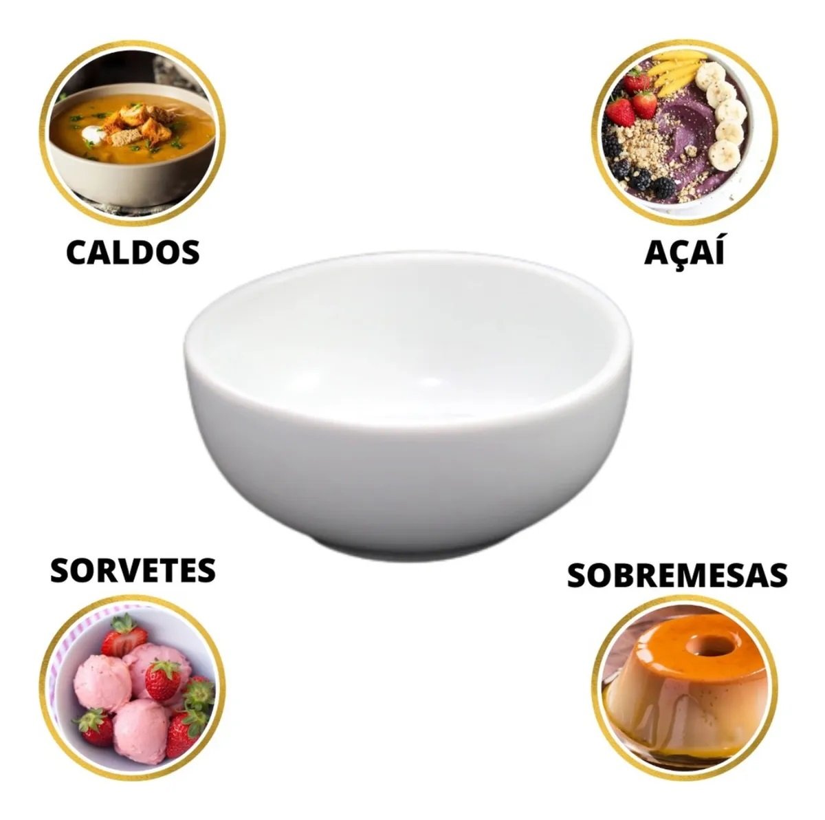 É perfeito para servir uma variedade de pratos, desde sopas e caldos até sobremesas e saladas.